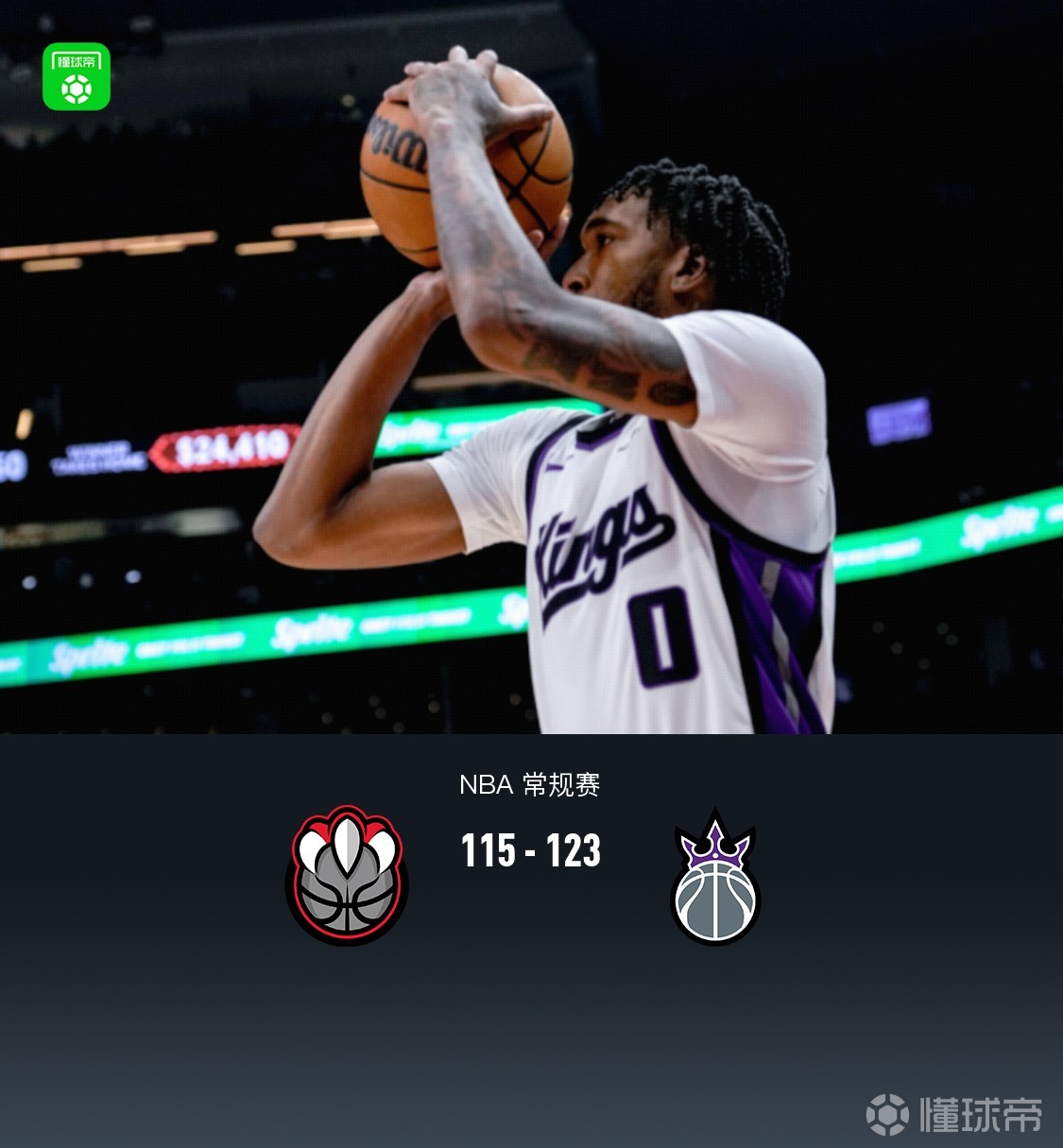 第四节猛龙贾马尔-谢德拿下10分,国王德罗赞拿下14分,最终猛龙115-123不敌国王