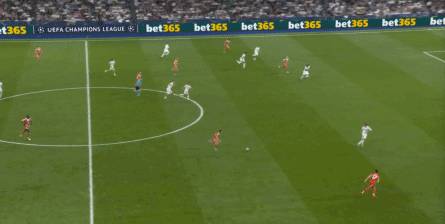于是在第18分钟,在经历了对手的连续施压过后,在赫伊森和居莱尔的帮助下,皇马打出了他们想要的进攻,这是他们本场第一次反击,也是相对威胁较大的反击之一: