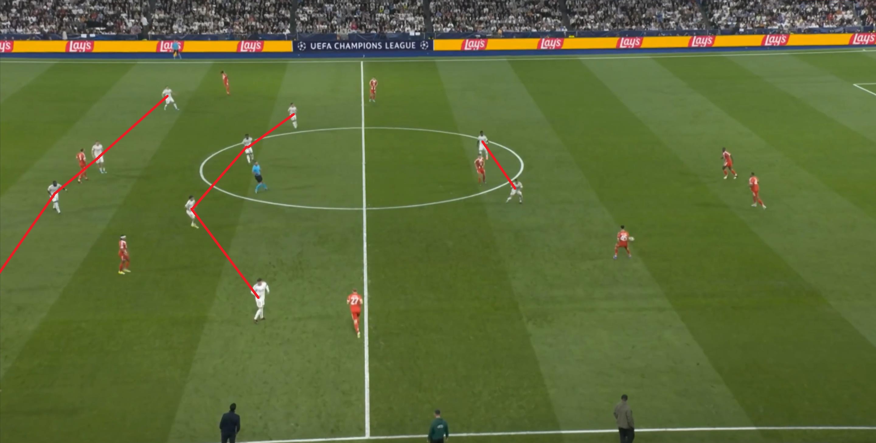 然而,上半场让人印象更为深刻的,并不是拜仁的进攻,反而是皇马的反击,他们每隔几分钟就能打出一次反击,从而在20分钟后,丢球之前,总计打出了三次不错的进攻: