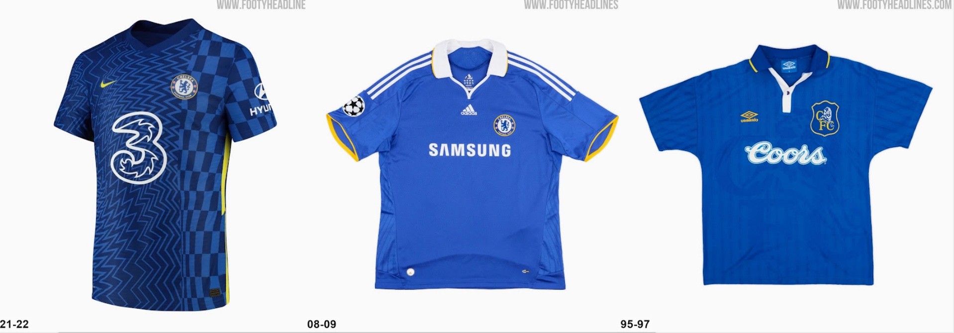 近日著名足球装备网站Footy Headlines更新了切尔西下赛季主场球衣的谍照。这款由耐克打造的新战袍,在配色、队徽以及设计理念上都发生了明显变化。